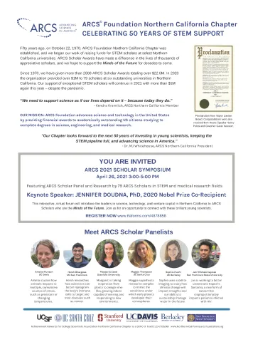 ARCS Northern California Chapter is delighted to have a prominent ad in the “Anniversaries” edition of the San Francisco Business Times/Silicon Valley Business Journal, published on February 5, 2021. In addition to acknowledging and celebrating our 50th anniversary, the ad and its accompanying photo gallery aim to publicize ARCS and its mission to the Bay Area business and tech community. Our upcoming Symposium and its ARCS Scholar speakers are featured, along with a registration link which we hope will elicit many clicks!
